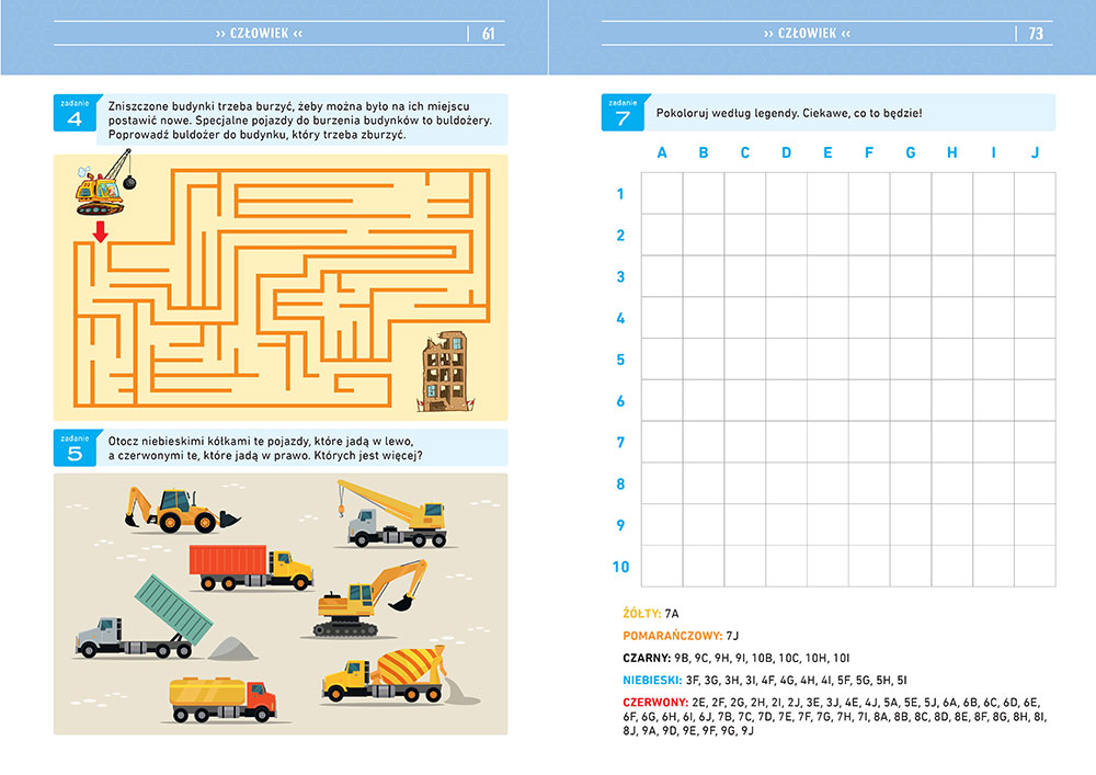 Zadania, jakie znalaz³ synek w ¶rodku, bardzo mu siê spodoba³y. Chêtnie zasiad³ do pracy, na pocz±tek jak to bywa w ka¿dej publikacji, rozwi±za³ wszystkie labirynty, nastêpnie odszuka³ ró¿nice, wszelkiego rodzaju ³amig³ówki. Du¿o czasu po¶wiêci³ na kodowanie, a kolorowanie pozostawi³ na sam koniec.