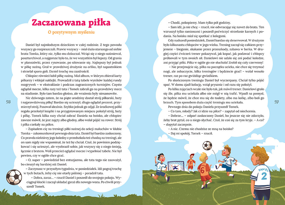 „Mądre bajki - pozytywne myślenie” to wyjątkowa publikacja, która przenosi nas w barwny świat bajek i opowieści dla najmłodszych, a jednocześnie stanowi cenny przewodnik po świecie wartości. To książka, która nie tylko bawi, ale też uczy i inspiruje. Zapraszamy do odkrywania jej niezwykłego świata razem z nami.