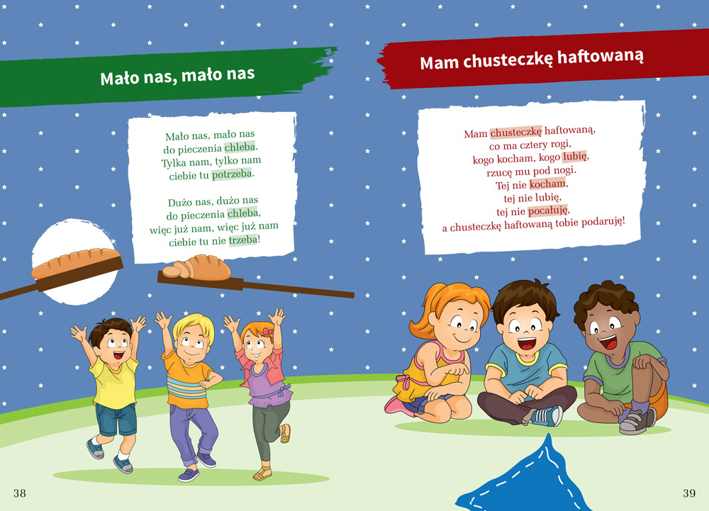 Przedstawiamy zbiór ponadpokoleniowych wierszyków, piosenek i rymowanek, które towarzysz± dzieciñstwu wszystkich Polaków - niektóre nawet od kilkudziesiêciu lat! Znali je nasi rodzice i dziadkowie, w naszym dzieciñstwie rozbrzmiewa³y w domach i na podwórkach, teraz wiêc czas, by przekazaæ je naszym dzieciom.