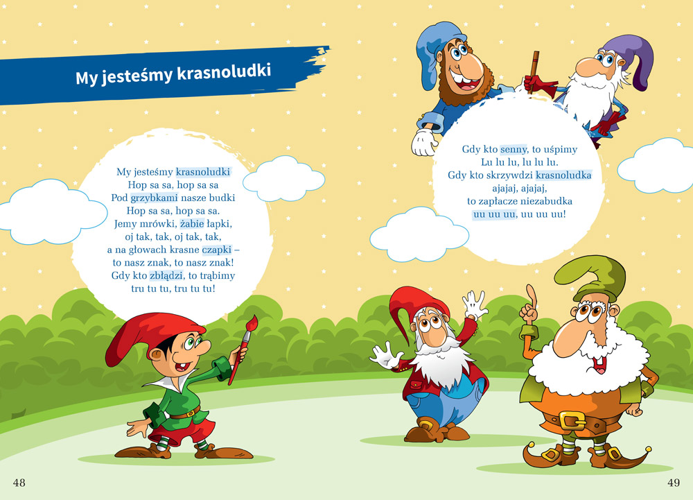Znajduj± siê tutaj tak znane utwory, jak By³a sobie ¿abka ma³a, Jedzie poci±g z daleka, Ojciec Wirgiliusz, Mam chusteczkê haftowan± czy Sroczka kaszkê warzy³a, a tak¿e bogaty wybór innych.