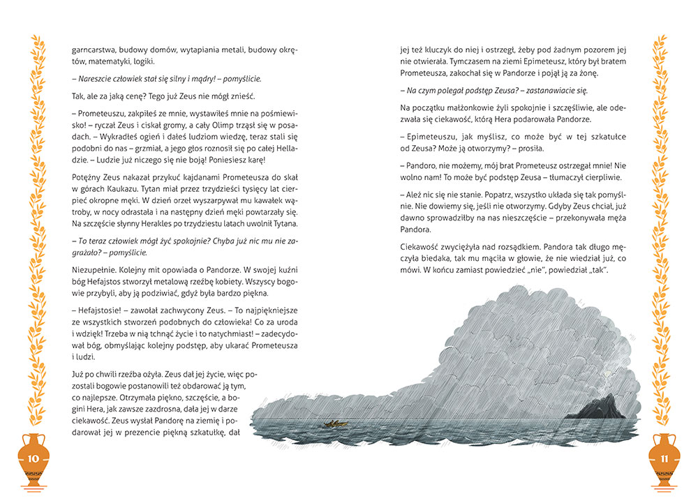 Ma³y odbiorca dowie siê miêdzy innymi, jak wed³ug Greków powsta³ ¶wiat, jak nazywaj± siê najwa¿niejsi bogowie, sk±d wzi±³ siê cz³owiek, a tak¿e pozna przygody najwspanialszych greckich herosów - Heraklesa i jego dwana¶cie niezwyk³ych zadañ do wykonania, Tezeusza i jego bohatersk± walkê z Minotaurem oraz historiê mi³o¶ci Orfeusza i Eurydyki. Znajomo¶æ tych historii przyda siê kiedy¶ w szkole!