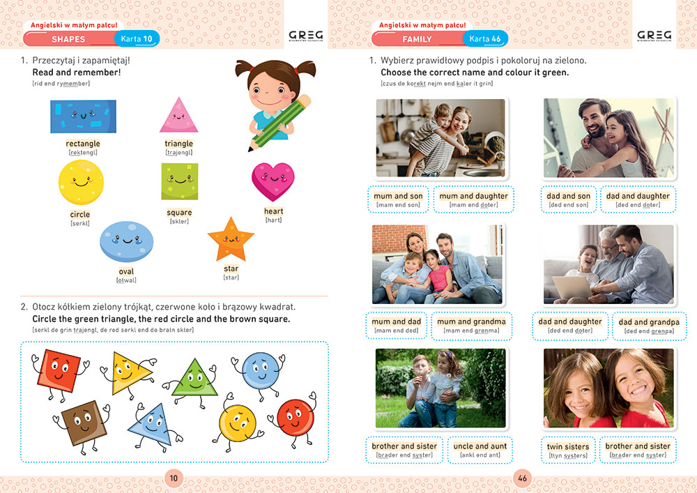 Karty s± w bardzo dobry sposób przygotowane – s± przede wszystkim kolorowe i w bardzo ³adny sposób ilustrowane. Literki s± czytelne i co najwa¿niejsze – przynajmniej dla tych pocz±tkuj±cych jest w ramkach napisana wymowa poszczególnych s³ów. Wydawnictwo Greg oddaje w nasze rêce, rêce rodziców, opiekunów bardzo dobrze przygotowan± propozycjê – chciejmy j± wykorzystaæ. Polecam!