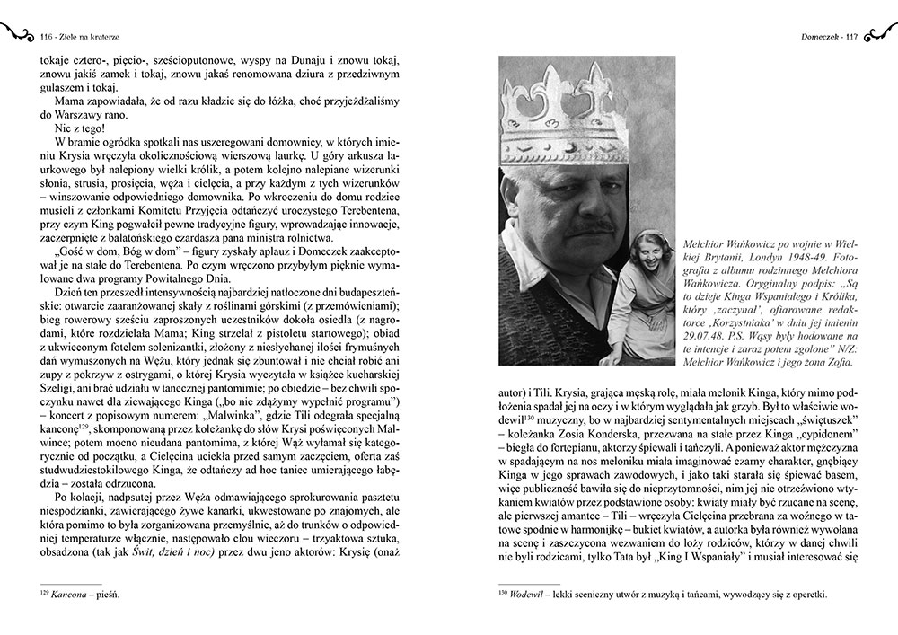 Pisarz prezentuje barwne, ciekawe, pełne niespodzianek dwudziestolecie międzywojenne, będące swoistym zderzeniem polskiej tradycji z nowoczesnością i postępem, ale też trudne i niebezpieczne czasy drugiej wojny światowej i powstania warszawskiego, które odcisnęło tragiczne piętno na rodzinie Wańkowiczów. Bohaterowie to postaci żywe, wielowymiarowe, nakreślone bez prób idealizacji.