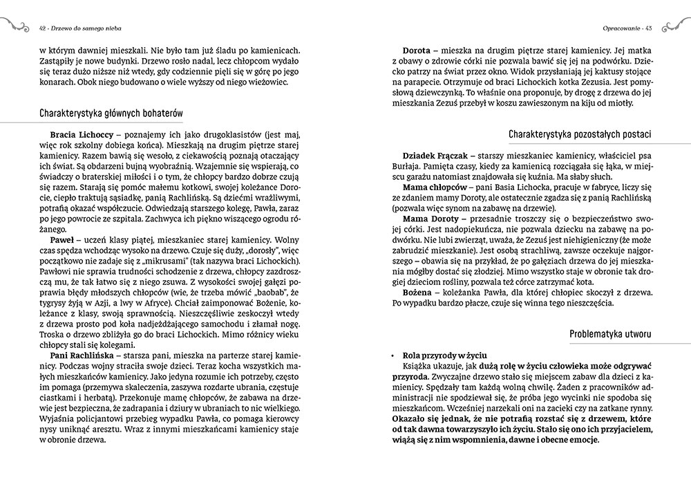 Piękna historia, ujmująco opowiedziana, z przesłaniem i różnymi wartościami, które warto w sobie pielęgnować. Zdecydowanie polecam (...) Książka zwraca uwagę na kwestię bezpieczeństwa podczas zabaw, ale przestrzega przed przesadą w tej kwestii. Bezpieczne życie, ale z dala od przyrody jest nudne, szare. Bez udziału przyrody w życiu człowieka, zwłaszcza dziecka, trudno dostrzec piękno i tajemnice świata. Kontakt z przyrodą daje wytchnienie, spokój, ale także pobudza wyobraźnię, uczy miłości do natury (...) Historię czyta się niezwykle lekko i przyjemnie. Książka oprócz tego, że podzielona jest na rozdziały, to jeszcze posiada krótkie i długie streszczenia, opisy miejsc akcji, opisy bohaterów, charakterystykę postaci wraz z odnośnikami w tekście. Te wbogacenia stają się pomocne w szkole, kiedy trzeba napisać plan wydarzeń lub stworzyć opis miejsca lub osoby.