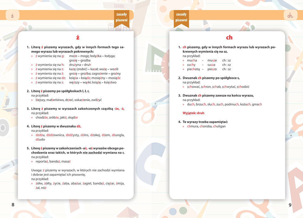 Teksty dyktand poprzedza wstęp gramatyczny, zawierający reguły gramatyczne z przykładami, opisane zrozumiałym, przystępnym językiem. Dzięki specjalnemu klejeniu każdą stronę książki można łatwo wyrwać i dać dziecku lub powielić. Dodatkowym atutem jest ładne, estetyczne, kolorowe opracowanie graficzne.