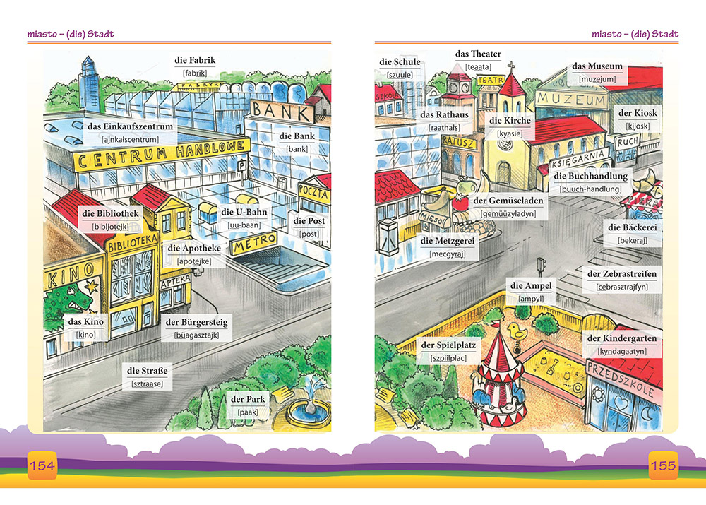 zilustrowane przykłady z życia, słownik podstawowych słówek przydatne w nauce niemieckiego, szkoda że nie znalazłam takiego angielskiego :)